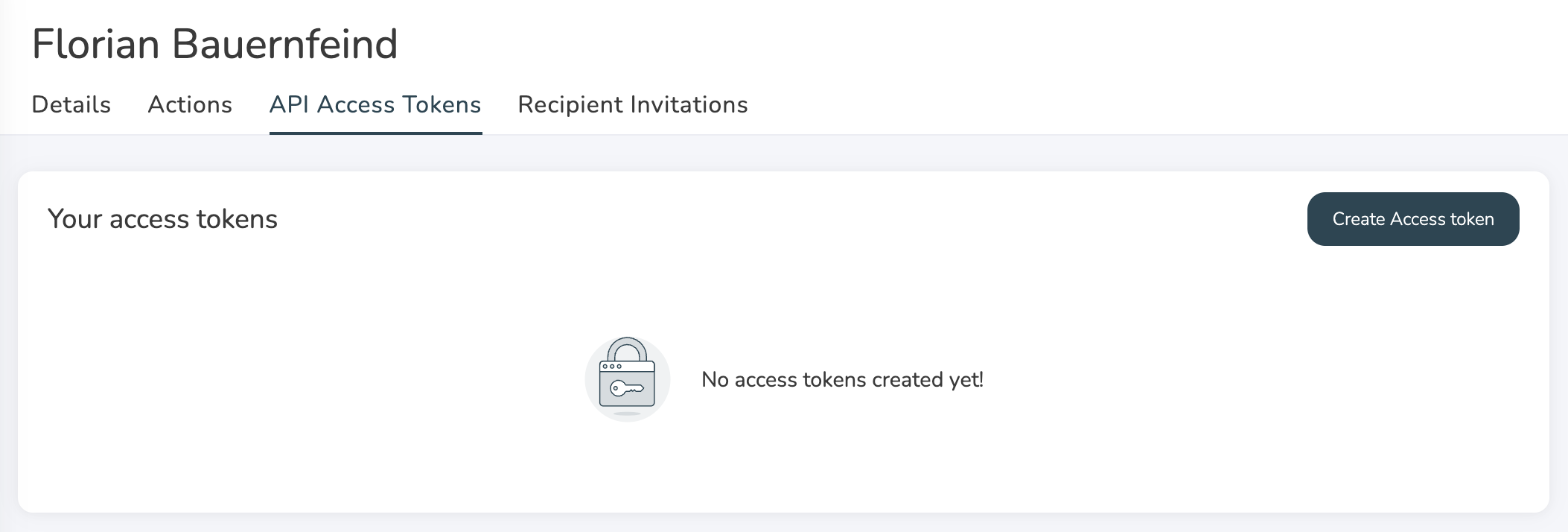 2. Go to the “API Access Tokens” tab and click on “Create Access Token.”