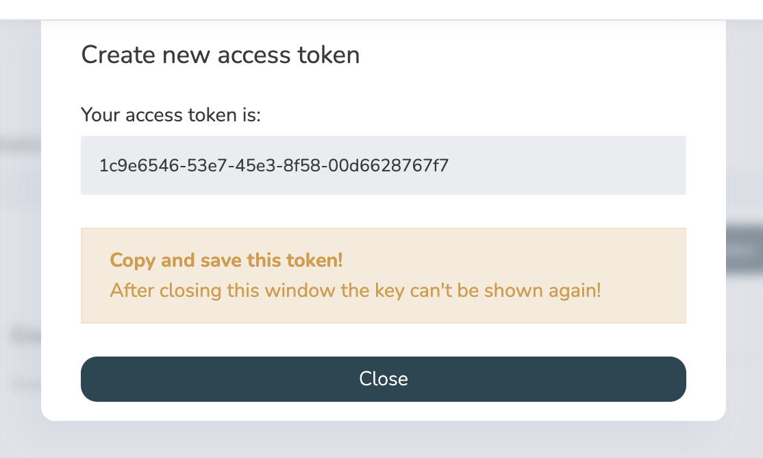 Important: The key will only be displayed once! Ensure you store the key in a secure password manager or similar tool.